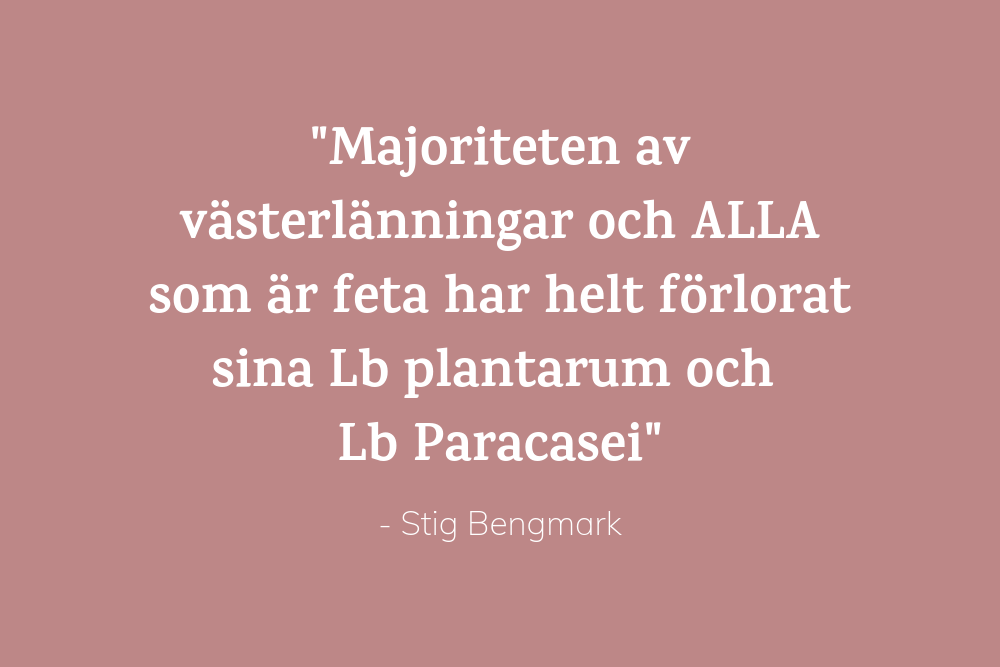 Majoriteten av västerlänningar och ALLA som är feta har helt förlorat sina Lb plantarum och Lb Paracasei .