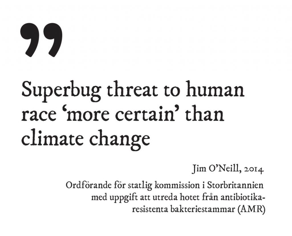 Men, nu ser det inte lika hoppfullt ut längre. Redan idag dör varje år cirka 50 000 människor bara i USA och EU i infektioner för vilka numera effektiv behandling saknas. De bakterier som förorsakar dessa infektioner har nämligen skapat sig totalt herravälde genom att utveckla full motståndskraft – resistens – mot just de läkemedlen som för inte länge sedan skapade en medicinsk framgång utan dess like.
